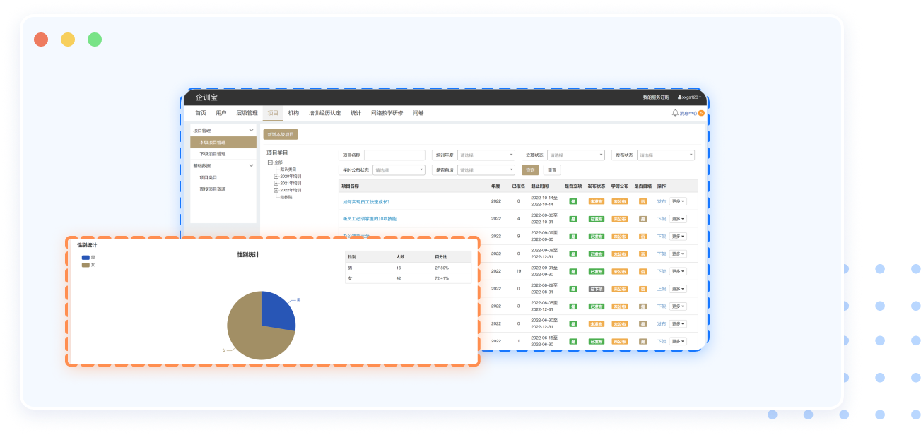 可根据业务需要设计培训项目主题,配置完善的课程体系及考